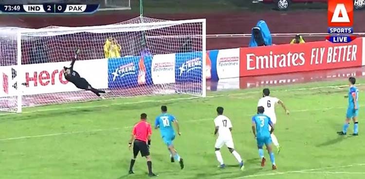 اے آر وائی نیوز کے مطابق ساف چیمپئن شپ میں بھارت کی فٹبال ٹیم نے پاکستان کو باآسانی 4-0 سے شکست دے دی، بھارتی ٹیم شروع ہی سے میچ پر حاوی رہی اور پاکستان کے گول پوسٹ پر تابڑ توڑ حملے کیے۔