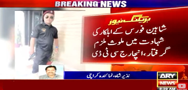کراچی میں سی ٹی ڈی لا انفورسمنٹ ٹارگٹ کلنگ سیل نے کارروائی کرتے ہوئے شاہین فورس کے اہلکار کی شہادت میں ملوث ملزم گرفتار کرلیا۔