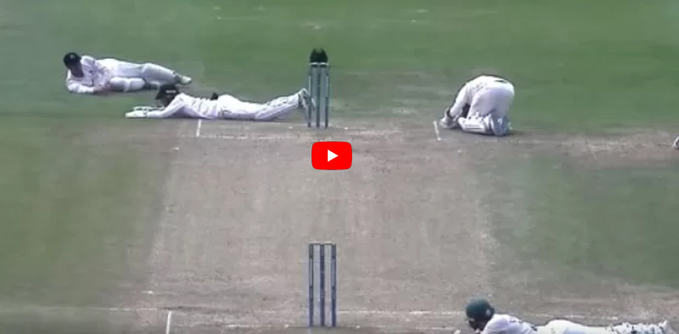 لیسٹر شائر کی جانب سے یہ مزاحیہ ویڈیو سوشل میڈیا پر شیئر کی ہے جس میں دیکھا جاسکتا ہے کہ مکھیوں کے حملے سے بچنے کے لئے کھلاڑی فوری طور پر زمین پر لیٹ گئے، فیلڈر، امپائر اور بلے باز سب میدان میں مکھیوں سے خوفزدہ نظر آئے۔