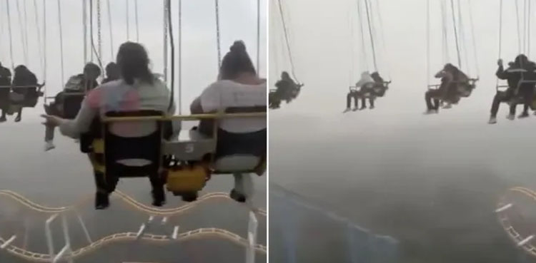 تھیم پارک میں جھولے پر بیٹھے لوگوں کی اس وقت جان پر بن آئی جب ہوا اور بارش کے دوران جھولا 200 فٹ کی بلندی پر اچانک رک گیا۔