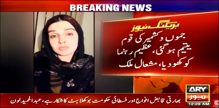 مشعال ملک نے کہا کہ کشمیریوں کی شناخت اور آزادی کے لیے سید علی گیلانی نے جدوجہد کی، ہم نے مسلم امہ اور انسانیت کے ایک بہت بڑے لیڈر اور مسیحا کو کھو دیا۔