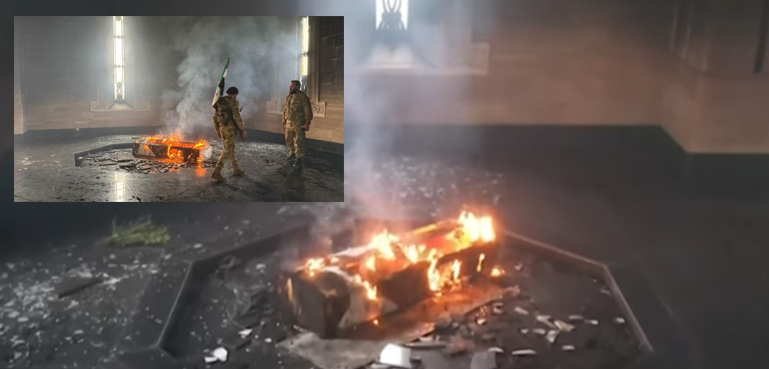شام میں معزول ومفرور صدر بشار الاسد کے والد اور ملک پر تین دہائیوں حکومت کرنے والے سابق صدر حافظ الاسد کے مقبرے کو جلا دیا گیا۔