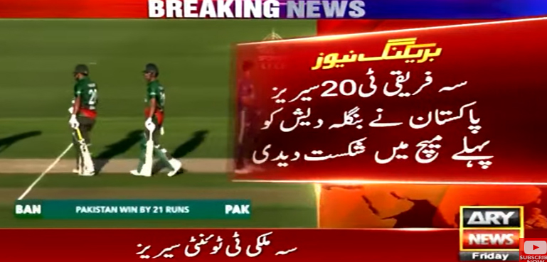 پاکستان نے نیوزی لینڈ میں کھیلی جا رہی سہ فریقی ٹی 20 سیریز کا فاتحانہ آغاز کرتے ہوئے افتتاحی میچ میں بنگلہ دیش کو 21 رنز سے شکست دے دی۔