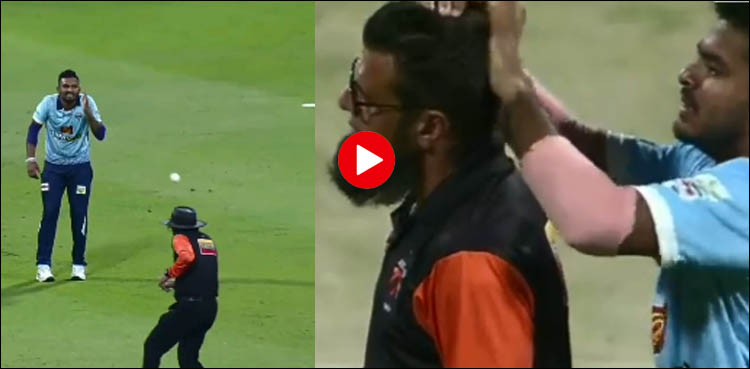 تفصیلات کے مطابق امپائر علیم ڈار کے ساتھ یہ حادثہ چنئی بریوز اور ناردرن واریئرز کے میچ کے دوران پیش آیا جس کی ویڈیو بھی منظر عام پر آگئی۔