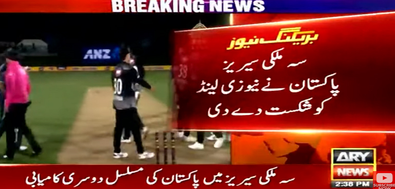 سہ فریقی ٹی 20 سیریز میں پاکستان نے میزبان نیوزی لینڈ کو 6 وکٹوں سے شکست دے کر سیریز میں مسلسل دوسری فتح حاصل کرلی۔