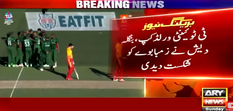 آسٹریلیا میں جاری ٹی 20 ورلڈ کپ کے سپر 12 مرحلے کے اہم میچ میں بنگلہ دیش نے سنسنی خیز مقابلے کے بعد زمبابوے کو 3 رنز سے شکست دے دی۔