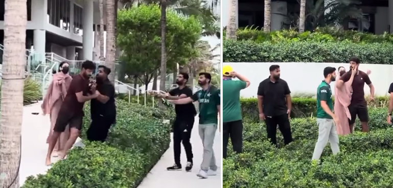 سوشل میڈیا پر وائرل یہ ویڈیو امریکی شہر فلوریڈا کے ہوٹل کے باہر کی ہے جہاں قومی فاسٹ بولر حارث رؤف اپنی اہلیہ کے ساتھ کہیں جا رہے ہیں کہ ایک ایک شخص کے آوازیں کسنے پر بے قابو ہوگئے۔