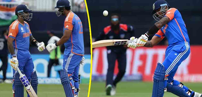 بھارت نے امریکا کی جانب سے دیا گیا 111 رنز کا ہدف 18.2 اوورز میں 3 وکٹوں کے نقصان پر حاصل کیا۔ تاہم انڈیا کی اننگز میں دلچسپ موقع تب آیا جب امپائرز کی جانب سے امریکا پر پانچ رنز کی پینلٹی لگائی گئی۔