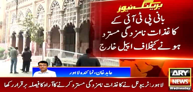 الیکشن ٹریبونل نے بانی پاکستان تحریک انصاف کے لاہور سے قومی اسمبلی کے حلقہ این اے 122 سے کاغذات نامزدگی مسترد ہونے کیخلاف اپیل خارج کر دی۔
