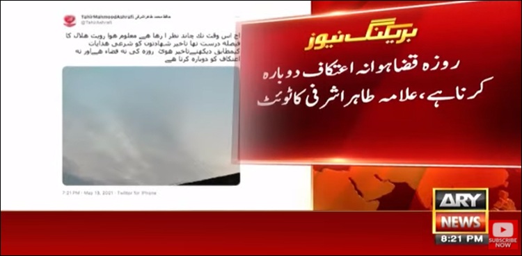 ’روزہ قضا ہوا نہ اعتکاف دوبارہ کرنا ہے‘ : علامہ طاہر اشرفی نے چاند کی تصویر شیئر کردی