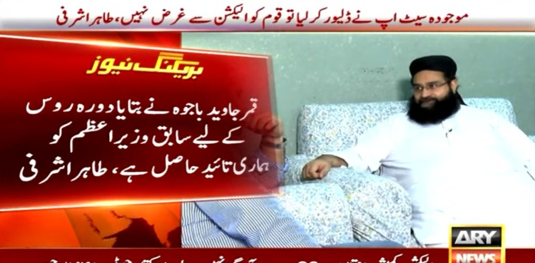 اسلام آباد: چیئرمین پاکستان علماء کونسل علامہ طاہر اشرفی نے کہا ہے کہ قمر جاوید باجوہ نے بتایا دورہ روس کے لیے سابق وزیر اعظم کو ہماری تائید حاصل ہے۔