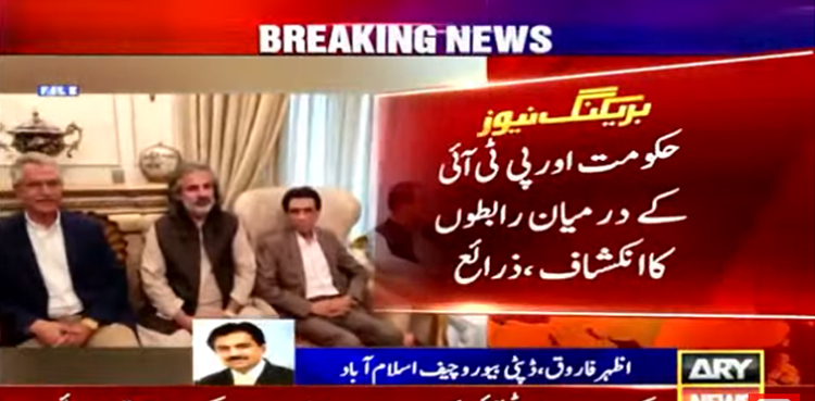 ذرائع نے کہا ہے کہ حکومت اور پی ٹی آئی کے درمیان رابطے جاری رکھنے پر اتفاق کرلیا گیا۔
