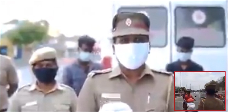 ناکے پر کھڑے پولیس افسر نے بتایا کہ لاک ڈاؤن کی خلاف ورزی کرنے والے نوجوانوں کو اسی طرح ڈرایا جائے گا تاکہ انہیں کرونا کی حساسیت کا اندازہ ہوا۔