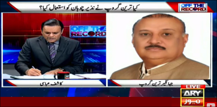 اے آر وائی نیوز کے پروگرام ’آف دی ریکارڈ‘ میں جہانگیر ترین گروپ کے راجہ ریاض نے ساتھی نذیر چوہان کے بیان پر ردعمل دیتے ہوئے کہا کہ نذیر چوہان دودھ پیتے بچے نہیں بڑے جذباتی آدمی ہیں۔