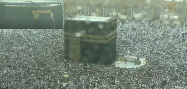 تیز بارش کے دوران بھی عمرہ زائرین خانہ کعبہ کے طواف میں مصروف رہے۔ اللہ کی رحمت طواف اور نماز کی ادائیگی کرنے والے زائرین اور معتمرین کو بھگوتی رہی اور اہل اسلام اس مسحور کن پرکیف لمحات سے لطف اندوز ہوتے رہے۔