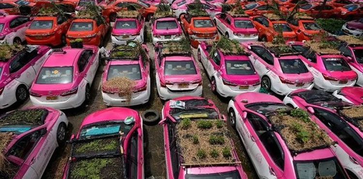 بنکاک : تھائی لینڈ میں عائد سخت کرونا پابندیوں نے کمپنی کو ٹیکسی کی چھت پر سبزیاں اگانے پر مجبور کردیا۔