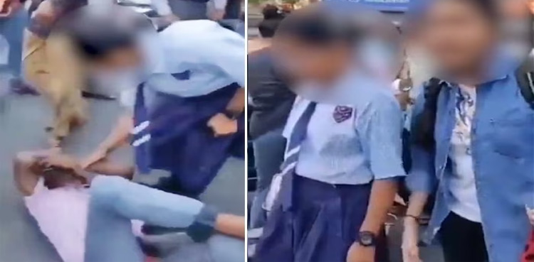 وائرل ویڈیو میں ملزم کو زمین پر لیٹا دیکھا جاسکتا ہے جب کہ ایک لڑکی اسے مار رہی ہے جب کہ وہاں موجود دوسرا نوجوان آس پاس کھڑے لوگوں کومعاملے کی تفصیل سے آگاہ کررہا ہے۔