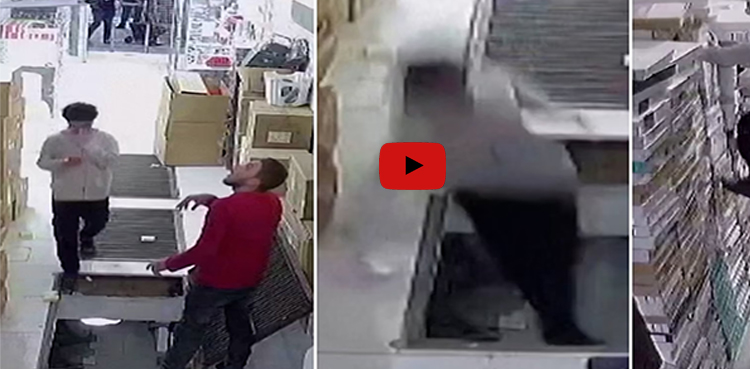یہ واقعہ ترکی میں پیش آیا جہاں شاپنگ مال کی دکان میں زیرزمین بنائے گودام میں جانے کے لیے راستہ کھولا گیا تو ایک نوجوان ملازم بے دھیانی میں چلتے چلتے اس میں جاگرا۔