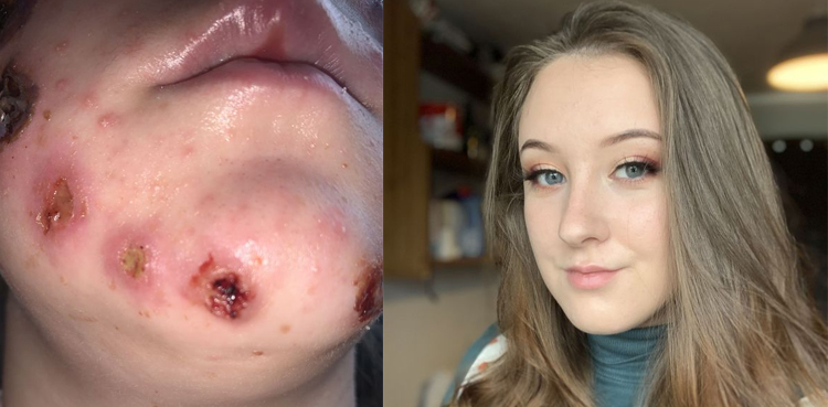 کرسٹن کوول جوکہ ویلز کی رہائشی ہے، اسے چہرے کی ایک ایسی بیماری نے آن گھیرا ہے، جسے دیکھ کر ایسا لگتا ہے کہ چہرے پر گوشت کھانے والے السر کا قبضہ ہوچکا ہے۔