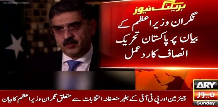 چیئرمین اور پی ٹی آئی کے بغیر منصفانہ انتخابات سے متعلق نگران وزیراعظم کا بیان پر تحریک انصاف کا ردعمل آگیا۔