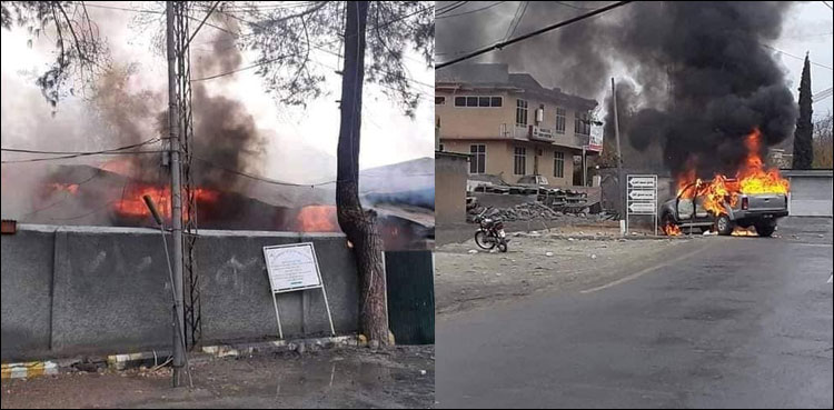 پیپلز پارٹی کارکنان اور مظاہرین کی جانب سے محکمہ جنگلات کے دفتر پر حملہ کیا گیا جبکہ تین گاڑیاں بھی نذر آتش کی گئیں۔