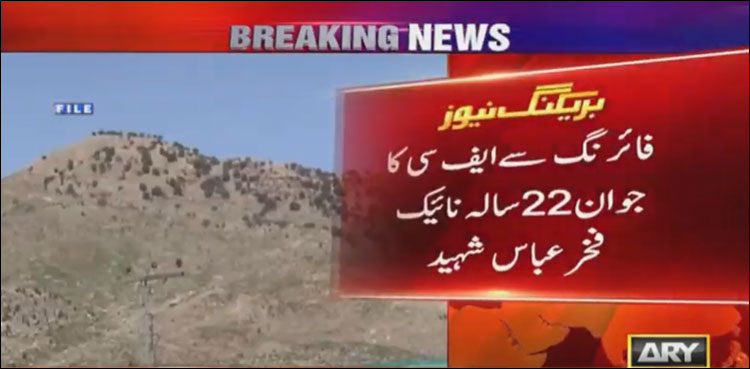 سیکیورٹی فورسز کی چیک پوسٹ پر دہشت گردوں کی فائرنگ کے نتیجے میں ایس سی کا 22 سالہ نائیک فخر عباس شہید ہوگیا جبکہ دو ایف سی جوان زخمی ہوگئے۔