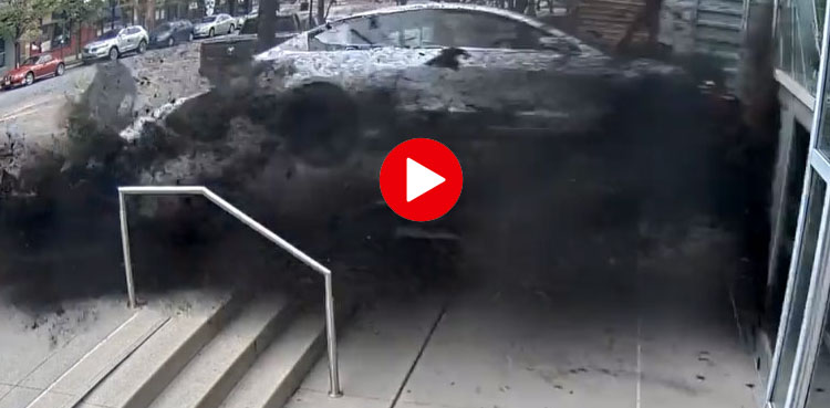 امریکا میں ٹیسلا کمپن کی گاڑی ڈرائیور سے بے قابو ہوکر عمارت میں جا گھسی جس کی ویڈیو منظرعام پر آگئی۔