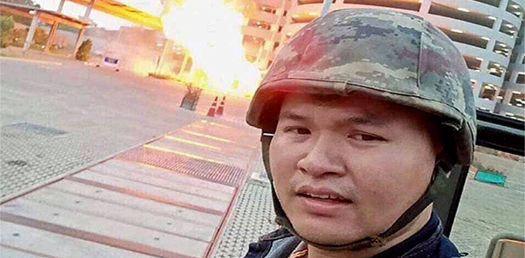 تھائی فوجی نے سوشل میڈیا کےذریعے براہ راست تباہی کو دیکھایا اور تصاویر بھی اپ لوڈ کیں، واقعے میں اب تک 12 افراد کے ہلاک ہونے کی تصدیق کی گئی ہے جس میں کمانڈگ آفیسر بھی شامل ہے۔