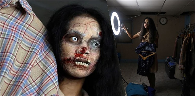 غیرملکی خبررساں اداے کی رپورٹ کے مطابق ناردرن تھائی لینڈ کی 32 سالہ خاتون کنیتھا تھونگنیک نے مردہ افراد کے کپڑے فروخت کرنے کے لیے ’زومبی‘ کا روپ دھار کر سوشل میڈیا صارفین کی توجہ اپنی جانب مبذول کروالی۔