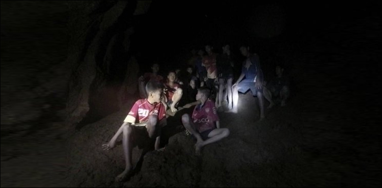 تفصیلات کے مطابق تھائی لینڈ میں ایک غار میں پھنسے فتبال ٹیم کے 12 نوجوان لڑکوں اور ان کے کوچ کو معجزاتی طور پر نو دنوں بعد زندہ تلاش کر لیا گیا ہے، امدادی ادارے انہیں غار سے نکالنے کے انتظامات میں مصروف ہیں، یہ غار سیلابی پانی سے بھر گیا تھا۔