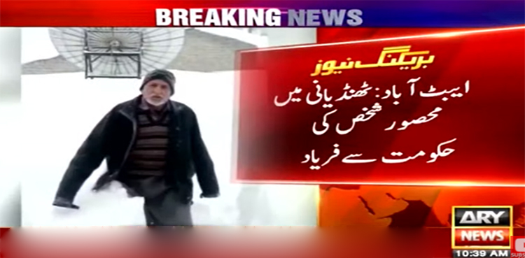 ٹھنڈیانی میں محصور شخص نے اپنے ویڈیو پیغام میں خوفناک حالات کا تذکرہ کرتے ہوئے کہا کہ شدید برفباری کے نتیجے میں ہم بُری طرح پھنس چکے ہیں، ہمارے پاس کھانے پینے کا تمام سامان ختم ہوچکا ہے، یہی حال رہا تو "ہم مرجائیں گے’۔