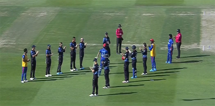 جب وہ بیٹنگ کے لیے میدان میں داخل ہوئے تو نمیبیا کے کھلاڑیوں کے ایک قطار میں کھڑے ہوئے ان کا استقبال کیا اور تالیاں بجائیں۔