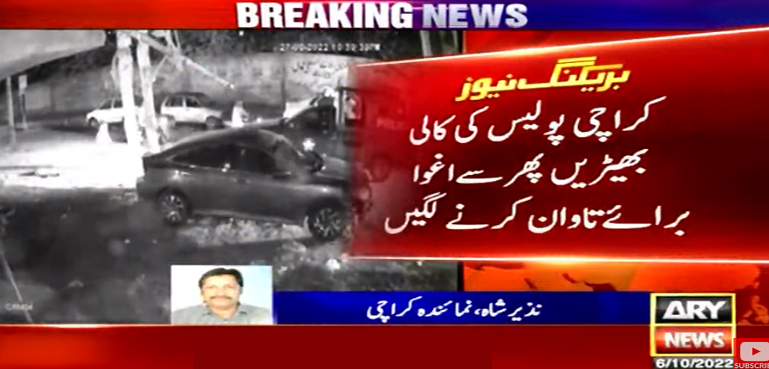 کراچی پولیس کی کالی بھیڑیں نے اغوا برائے تاوان کی وارداتیں پھر شروع کردی ہیں سپر ہائی وے پر بس اڈے کے قریب سے پولیس اہلکار مغوی نوجوان کو موبائل میں لے اڑا۔