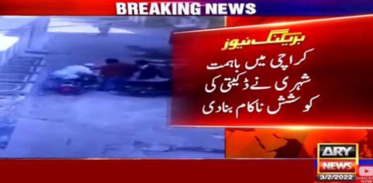 اے آروائی نیوز کے مطابق بدھ کی شب نیوکراچی سیکٹر فائیو اے میں موٹرسائیکل سوار ملزمان نے شہری کو روکنے کی کوشش کی۔