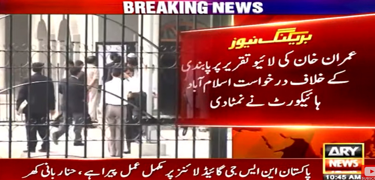 اسلام آباد ہائیکورٹ نے پیمرا کے وکیل کے عدالت سے متفق ہونے پر عمران خان کی لائیو تقریر پر پابندی کیخلاف درخواست نمٹا دی۔