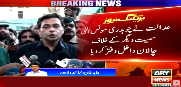 دوسری جانب مونس الہٰی کے وکیل نے میڈیا سے گفتگو کرتے ہوئے کہا ہے کہ مونس الہٰی سمیت دیگر کے خلاف درج مقدمہ خارج کردیا گیا ہے اور مقدمہ خارج ہونے کے بعد چالان کی کوئی حیثیت نہیں رہی۔