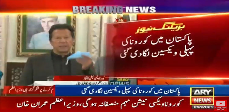 پاکستان میں کورونا کی پہلی ویکسین لگا دی گئی، وزیراعظم عمران خان نے ملک میں کورونا ویکسی نیشن مہم کا آغاز کر دیا۔