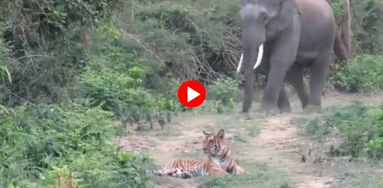 چند سیکنڈ کی اس ویڈیو میں دیکھا جاسکتا ہے جب ہاتھی آگے بڑھا تو چیتا ہاتھی کی جانب دیکھنے لگا اور پھر اچانک ہاتھی کی گزر گاہ کو چھوڑ کر بھاگ کھڑا ہوا۔ اداکارہ کے مداحوں نے دلچسپ کمنٹ بھی کیے۔