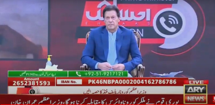 تفصیلات کے مطابق وزیراعظم عمران خان نے احساس ٹیلی تھون میں شرکت کی۔ اس موقع پر انہوں نے کہا کہ لوگوں کو خوش فہمی ہوجاتی ہے کہ دیگر ممالک جیسے حالات یہاں نہیں ہیں، کرونا کے باعث لاک ڈاؤن کے اثرات ابھی آئیں گے، لوگوں کی سیونگز ختم ہورہی ہیں، گھروں میں بند ہیں، حکومت مدد کی ہرممکن کوشش کررہی ہے۔