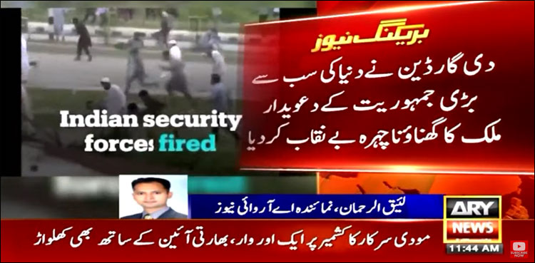 نئی دہلی: دی گارڈین نے سب سے بڑی جمہوریت کے دعویدار بھارت کا گھناؤنا چہرہ بے نقاب کر دیا، مقبوضہ کشمیر سے متعلق بھارت نے بُچر پیپرز کو منظرِ عام پر لانے سے روکنے کے لیے اوچھے ہتھکنڈے اپنائے۔