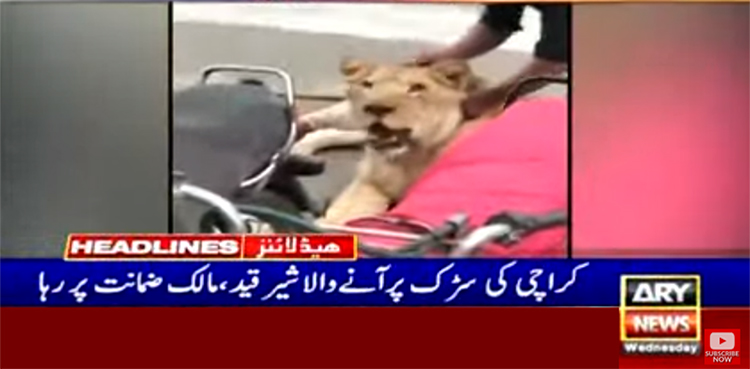 کراچی کی سڑک پر آنے والا شیر قید، مالک ضمانت پر رہا