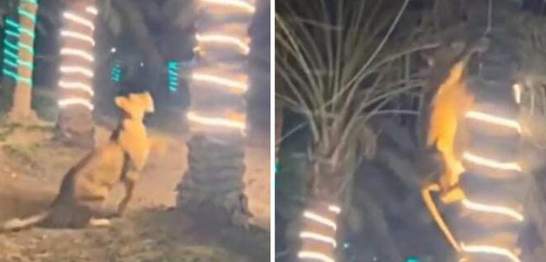ویڈیو میں دیکھا جاسکتا ہے کہ برقی قمقموں سے سجے ہوئے ایک درخت پر خونخوار شیرنی چڑھتی ہے اور وہ وہاں پہلے سے تحفظ کیلیے چڑھنے والے شخص پر حملہ آور ہونے کی کوشش کرتی ہے، شیرنی کو اوپر آتا دیکھ کر وہ شخص مزید اوپر چڑھتا ہے جب کہ شیرنی اس پر بار بار حملہ کرکے اسے اپنا شکار بنانے کیلیے نیچے گرانے کی کوشش کرتی ہے۔