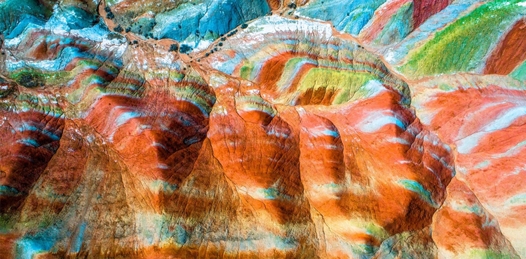شمالی مغربی چین کے صوبہ گانسو میں چلیان پہاڑوں کے دامن میں موجود یہ نیشنل پارک بھی عالمی ثقافتی ورثہ ہے اور چین کے خوبصورت ترین قدرتی عجائب میں سے ایک ہے، پہلی نظر میں تو ایسا لگتا ہے کہ کسی مصور نے کوئی فن پارہ تخلیق کرنے کے لیے بہت احتیاط کے ساتھ رنگ سجائے ہیں،دو سو میل پر پھیلے اِن پہاڑوں کے رنگ زمانہ ہائے قدیم سے موجود ہیں اور یہ مختلف پتھروں کی باقیات ہیں، جن میں لوہے کے ذرات اور دیگر معدنیات بھی شامل ہیں۔