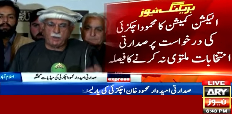 الیکشن کمیشن نے صدارتی الیکشن ملتوی کرنے کی محمودخان اچکزئی کی درخواست مسترد کر دی۔