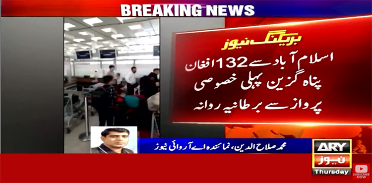 اسلام آباد سے 132 سے زائد افغان پناہ گزین پہلی خصوصی چارٹرڈ پرواز سے برطانیہ روانہ ہو گئے ہیں۔