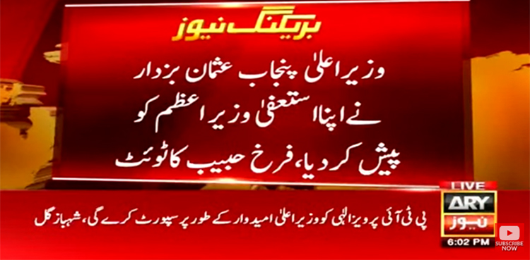وزیراعلیٰ پنجاب عثمان بزدار نے اپنا استعفیٰ وزیر اعظم کو پیش کر دیا۔