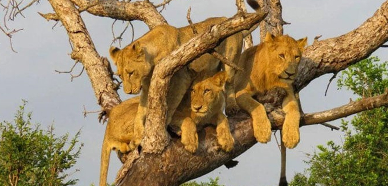 یہ خوبصورت تصویر جنوبی افریقہ میں واقع کروگر نیشنل پارک میں قدرتی ماحول میں رہنے والے شیروں کی ہے جن کی درخت پر چڑھ کر بیٹھ جانے نے سب کو حیران کر دیا۔