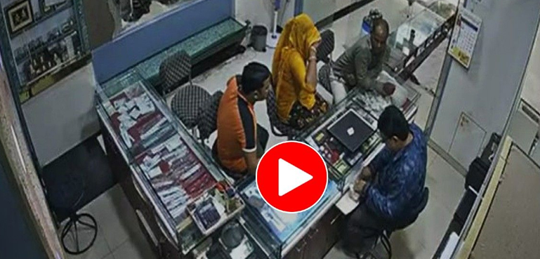 ویڈیو میں صراف ایک تھیلے سے سونے کے چھوٹے چھوٹے زیورات نکال کر گاہک بن کر چوری کرنے کیلیے آنے والے افراد کو دکھا رہا ہے، وہ ایک ایک کرکے مختلف زیورات کاؤنٹر پر رکھتا جاتا ہے اور مزید زیورات دکھانے کے لیے نکال رہا ہوتا ہے کہ اسی دوران خاتون جو کہ اپنے انداز سے ماہر چور لگتی ہے کاؤنٹر پر دکھانے کے لیے رکھے جانے والے زیورات میں سے ایک زیور اٹھا لیتی ہے جب کہ اس کے قریب بیٹھا ایک آدمی فوری طور پر کاؤنٹر پر پڑے دیگر زیورات کو ایڈجسٹ کرتا ہے تاکہ دکاندار کو پتہ نہ چلے کہ یہاں سے کچھ اٹھایا گیا ہے۔