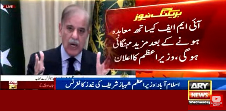 وزیراعظم شہبازشریف نے کہا ہے کہ آئی ایم ایف کے ساتھ معاہدہ ہونے کے بعد یقیناً مہنگائی ہو گی آئی ایم ایف کیساتھ جو شرائط طےکی گئی ہیں ان کو بھی پورا کرنا ہے۔