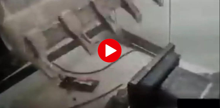ویڈیو میں دیکھا جاسکتا ہے کہ چور کرین کی مدد سے اے ٹی ایم مشین کو اکھاڑا رہے ہیں۔
